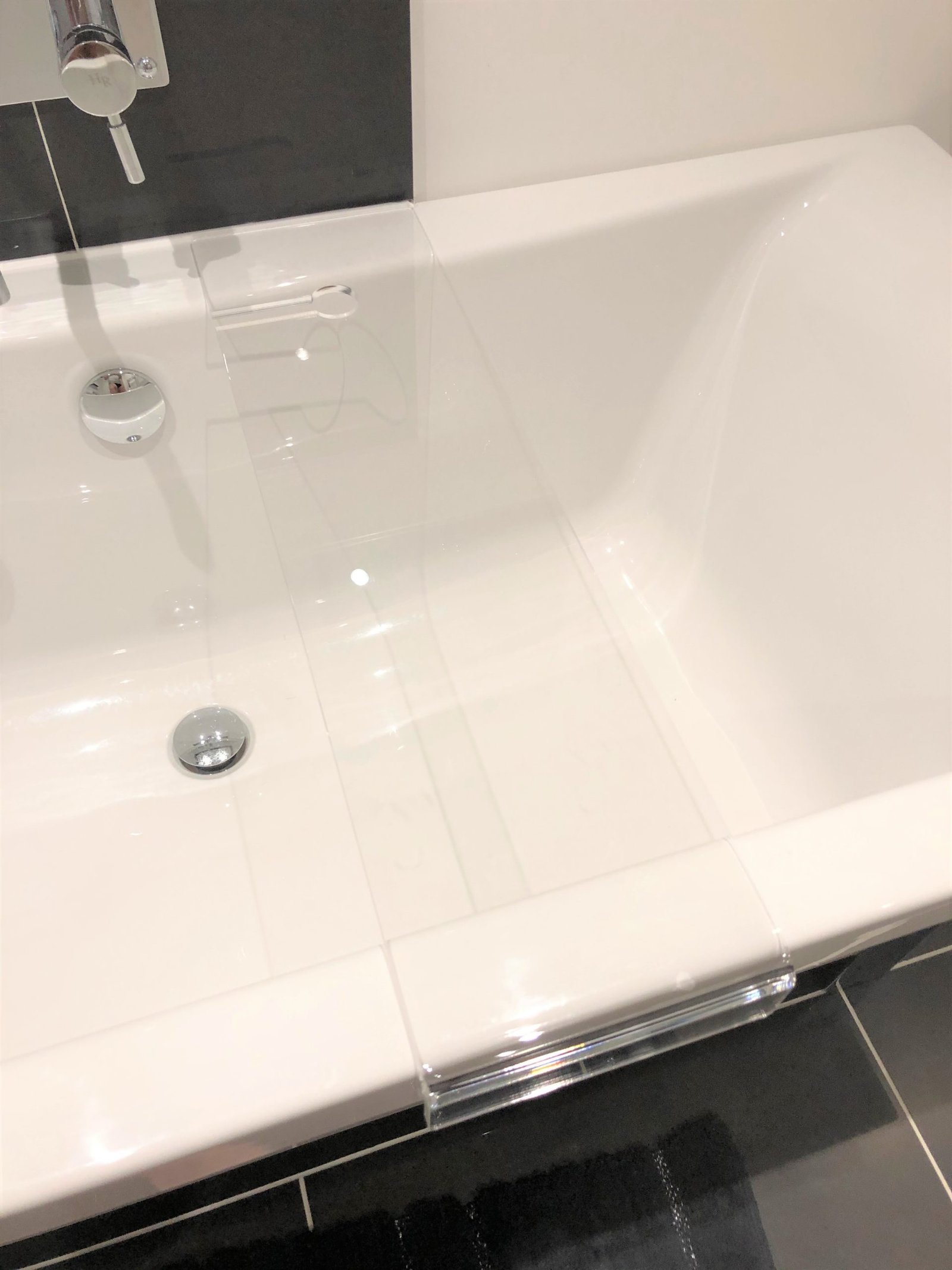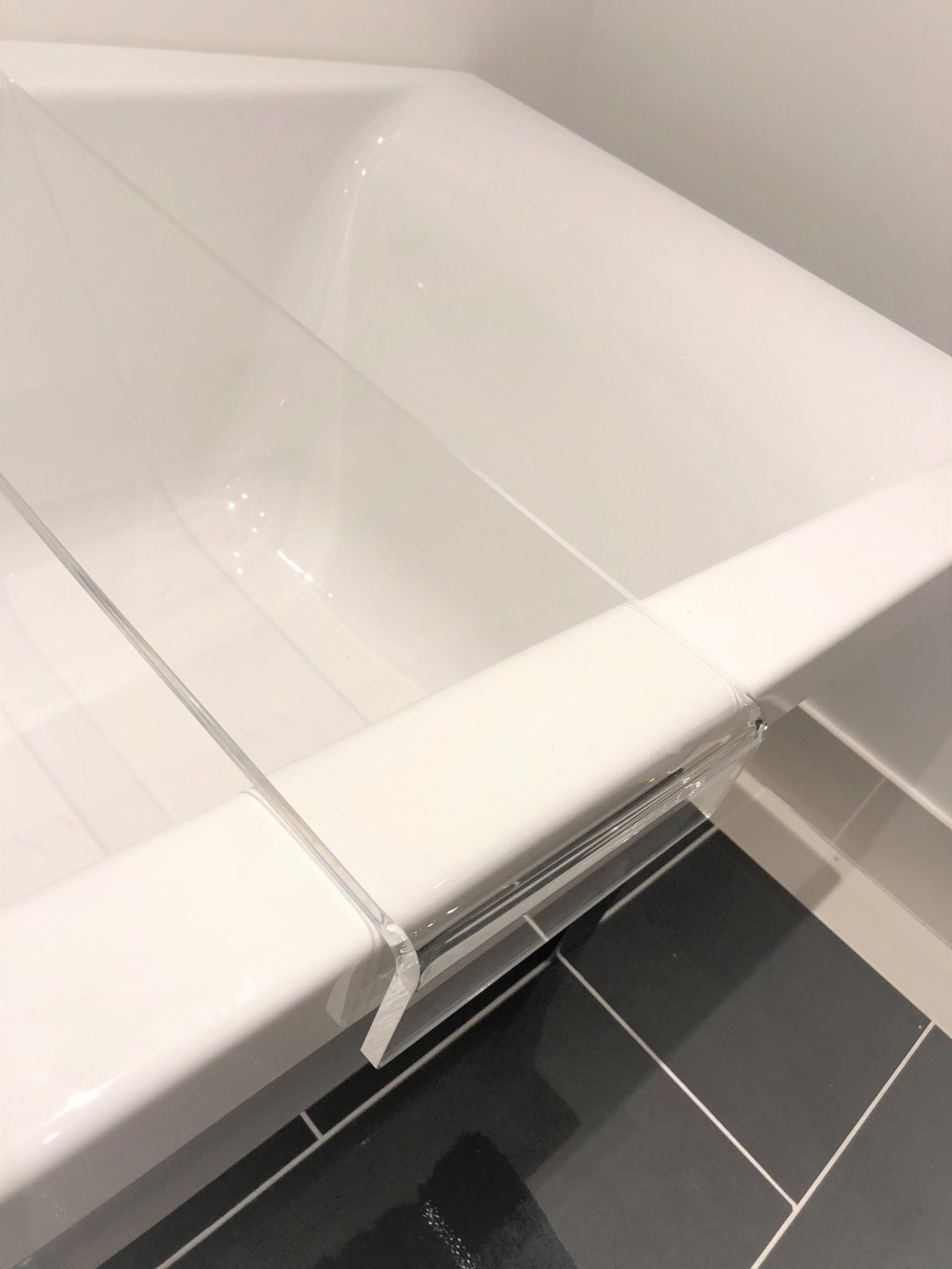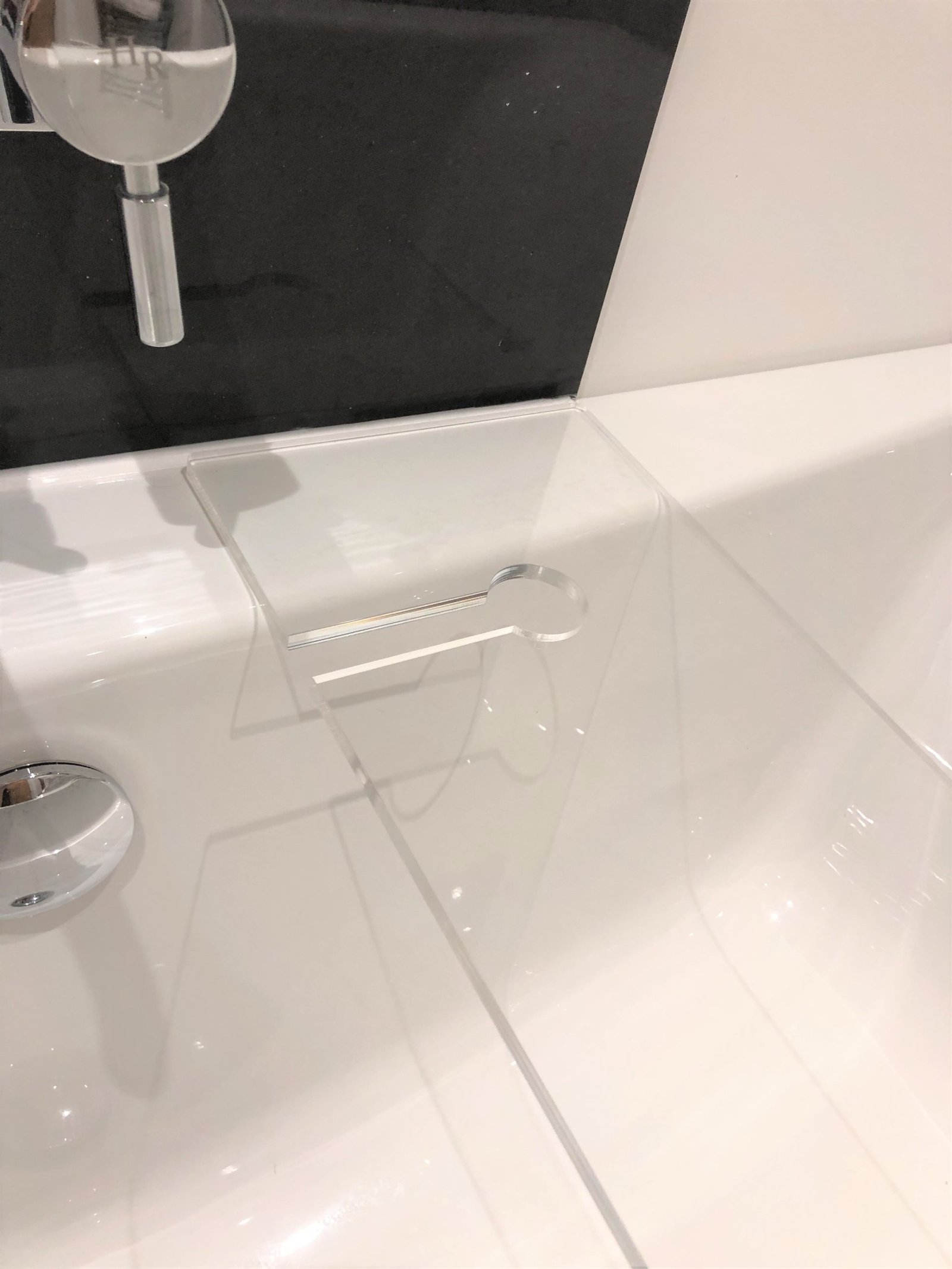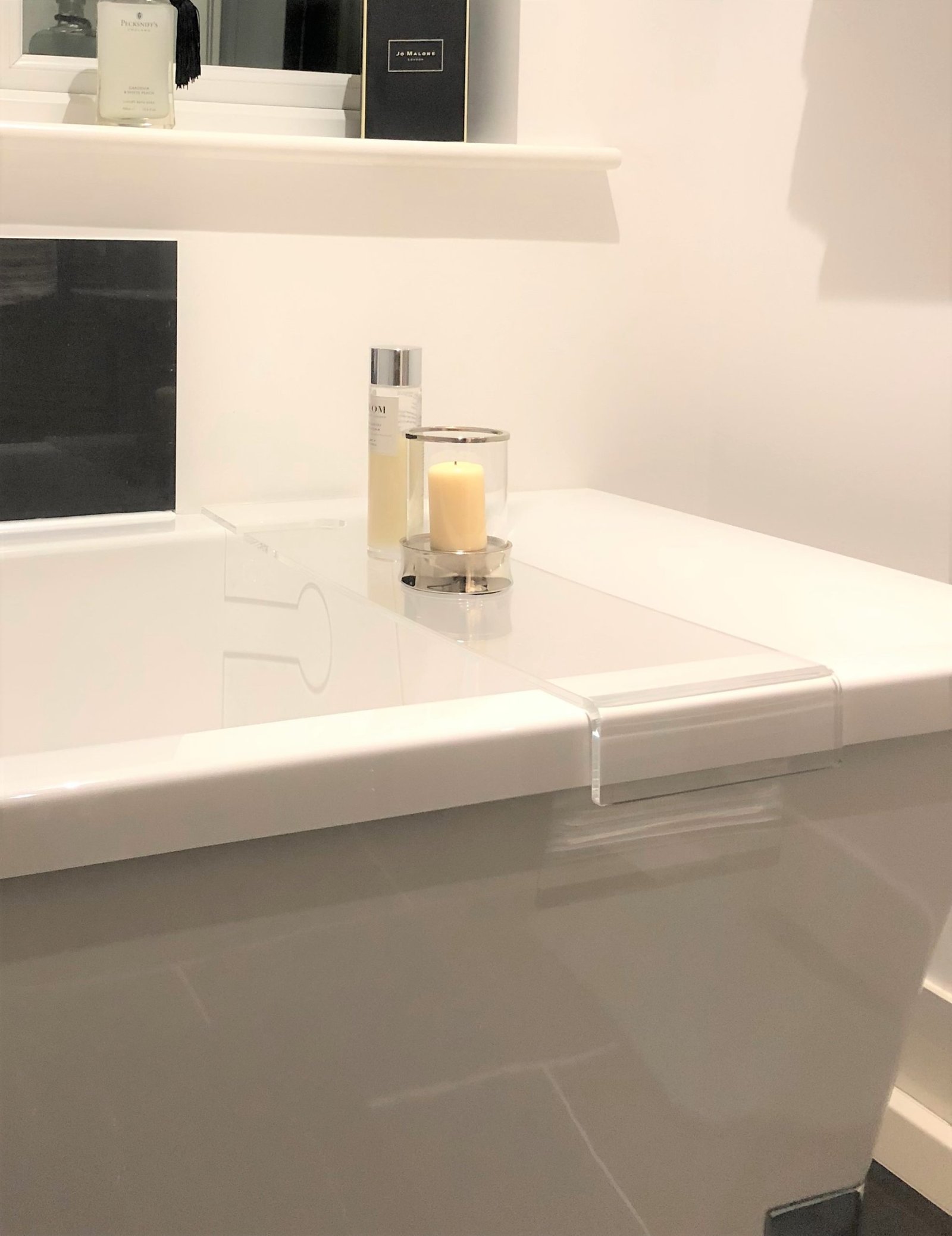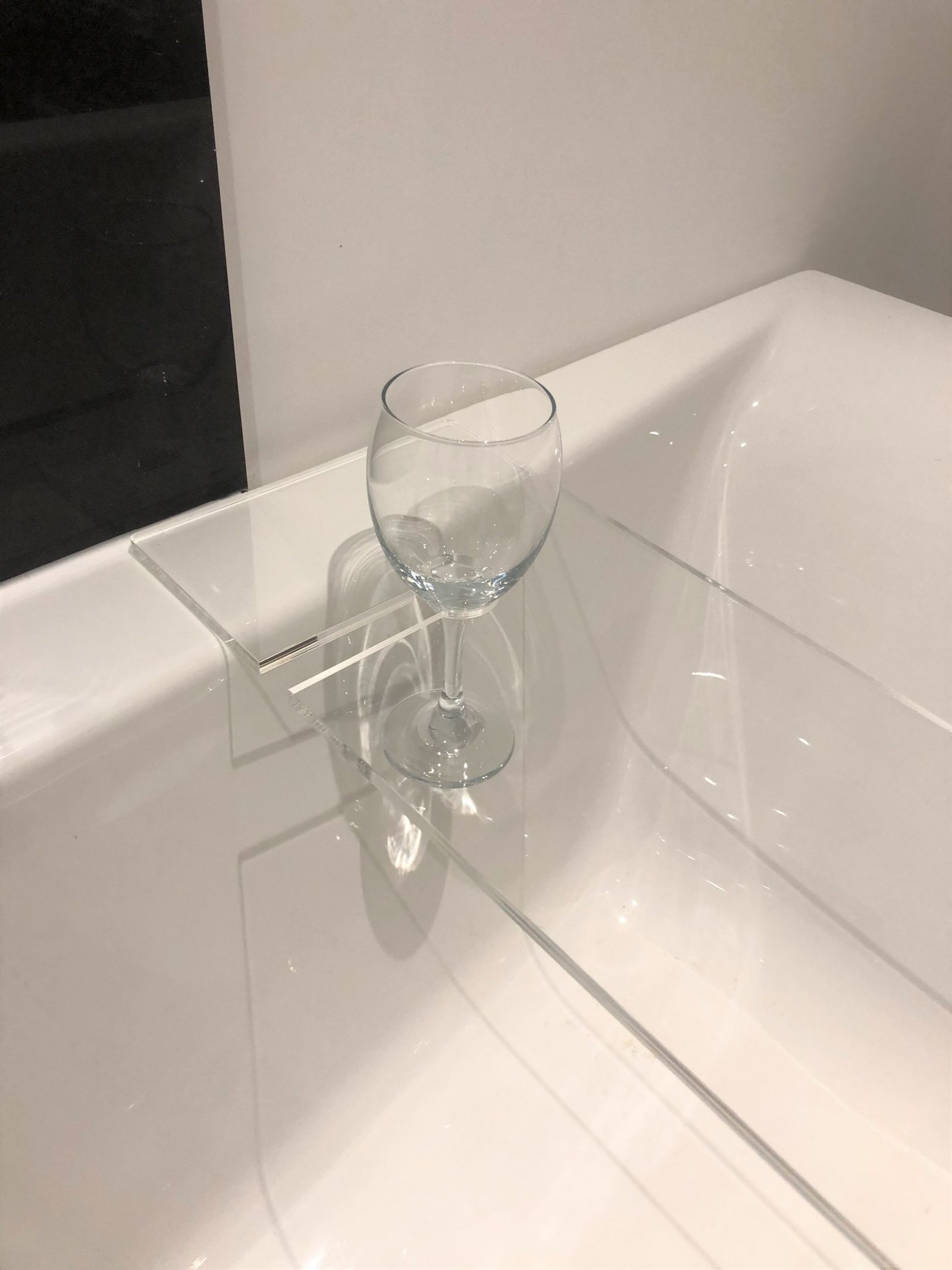Quality Clear Acrylic Bath Shelf/ Caddy with wine holder slot for standard bath or roll top bath